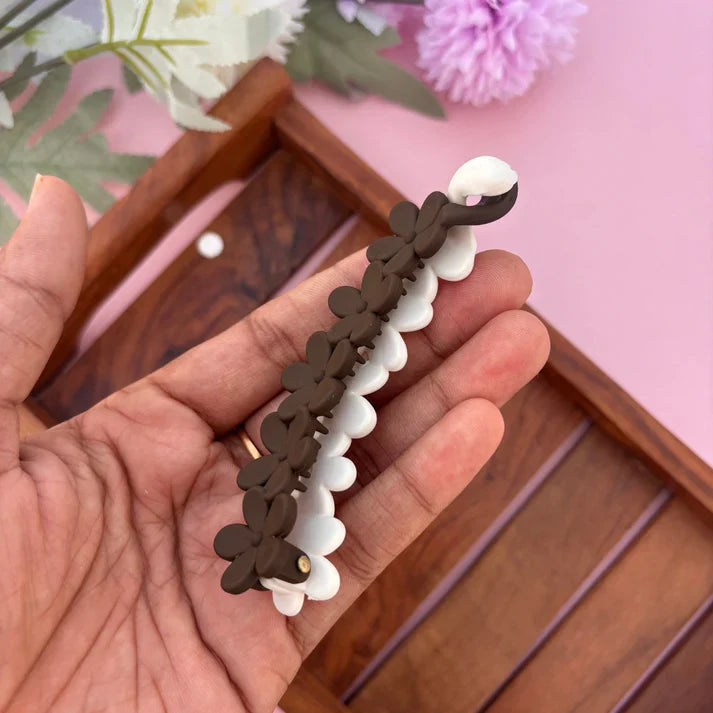 Dual Colour Flower Lock Banana Clip – stylish, strong grip & perfect for everyday or festive looks. Add beauty & hold to your hairstyle in seconds!