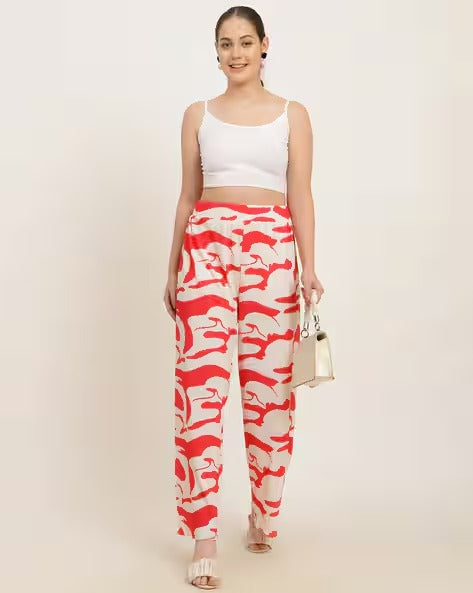 Full Length Pleated Abstract Print Relaxed Fit Palazzo