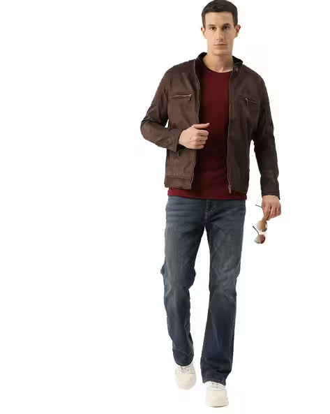 Men Regular Fit Zip-Front Biker Jacket – stylish, comfortable, and built for everyday edge. Features zip closure, biker collar, and a durable finish.