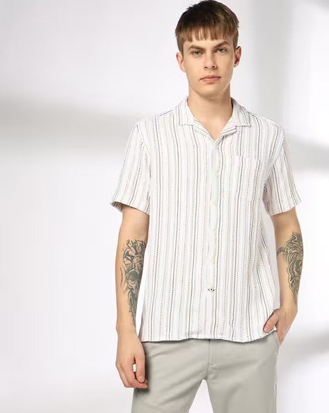 Men’s Striped Resort Slim Fit Shirt with patch pocket – lightweight, stylish & perfect for casual summer days.