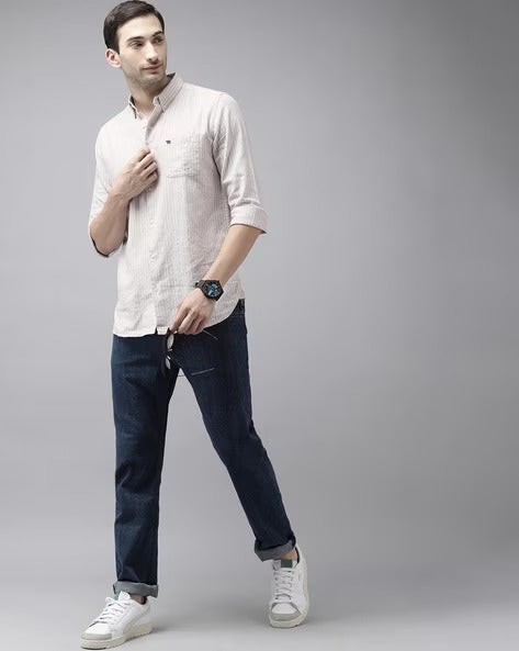 Men’s Striped Slim Fit Linen Shirt – breathable, stylish & perfect for any occasion. Tailored for comfort and versatility.