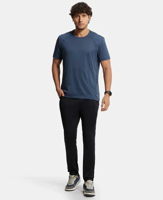 Black Microfiber Stretch Joggers with zipper pockets & StayDry tech. Lightweight, sweat-wicking & perfect for workouts or daily wear.