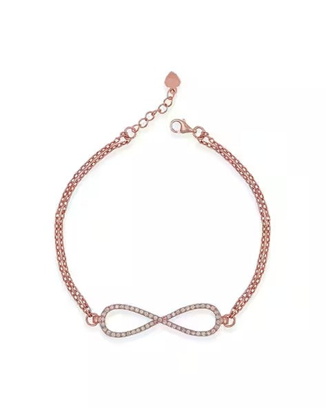 Elegant Rose Gold Infinity Bracelet made from 925 sterling silver. A symbol of love & connection—perfect gift for her.