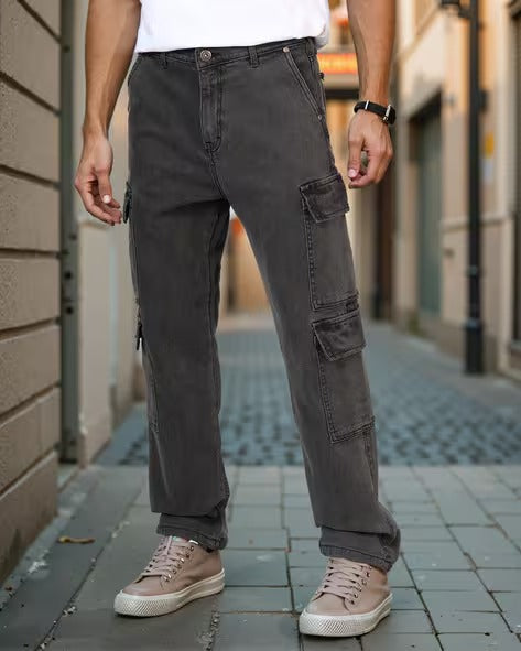 Shein Street Full-Length Straight Cargo Jeans with functional pockets and a trendy streetwear vibe. Comfort meets utility in this everyday essential.