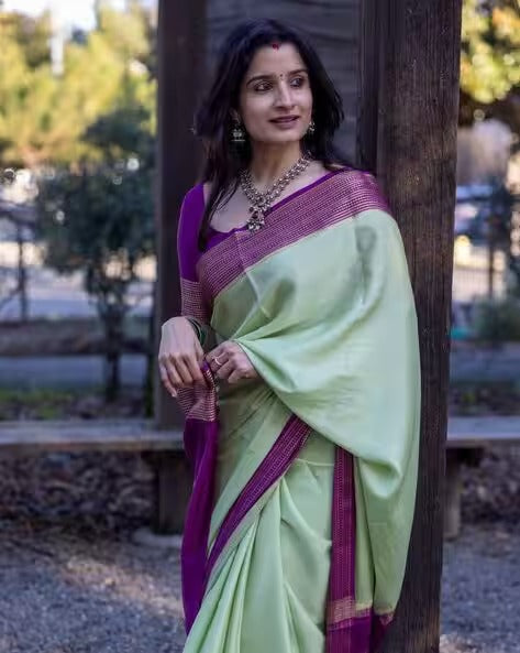 Shop stunning Women’s Banarasi Silk Saree with contrast border – elegant, festive & timeless. Perfect for weddings, parties & special occasions.
