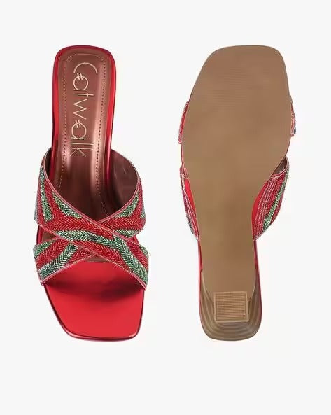 Stylish Women’s Embellished Kitten-Heeled Sandals. Elegant, comfy & perfect for parties or festive wear. Add a sparkle to every step