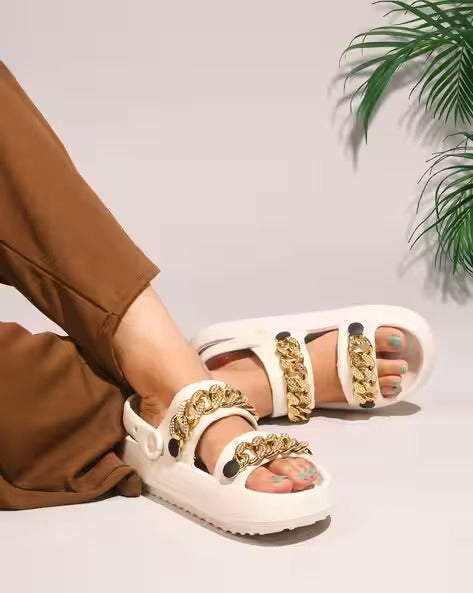 Women Embellished Strap Slingback Platform Sandals