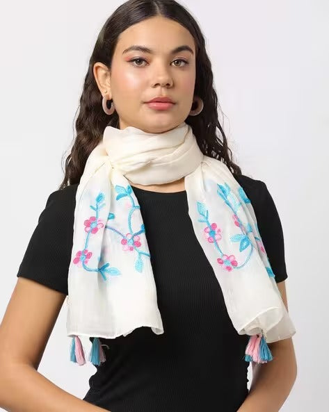 Women's Embroidered Scarf with Tassels – soft, lightweight, and beautifully detailed. Perfect for any outfit.