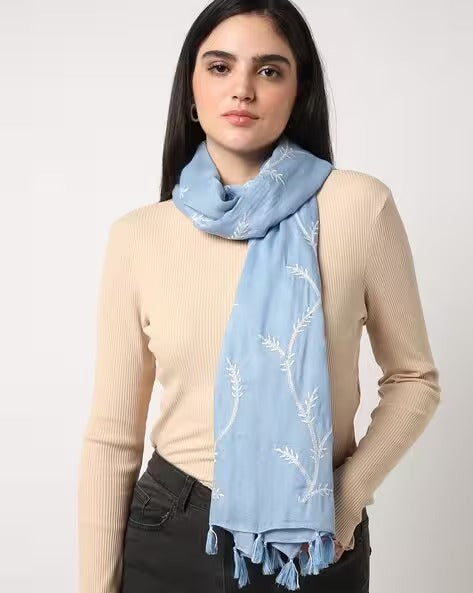 Women Embroidered Scarf with Tassels