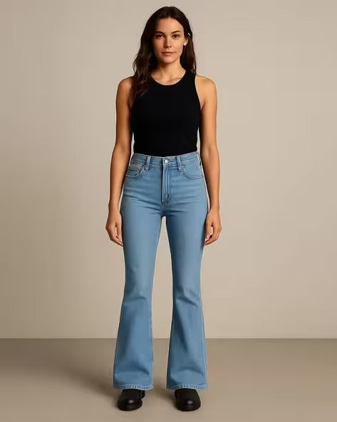 Women’s Mid-Rise Jeans with stylish insert pockets—flattering fit, stretch comfort & perfect for daily wear.