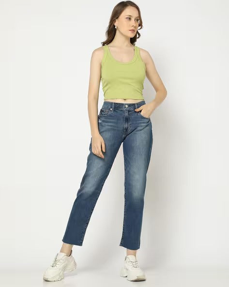 Trendy Women’s Mid-Wash Girlfriend Fit Jeans – relaxed fit, soft denim, and perfect for everyday wear. Stylish comfort you'll love!