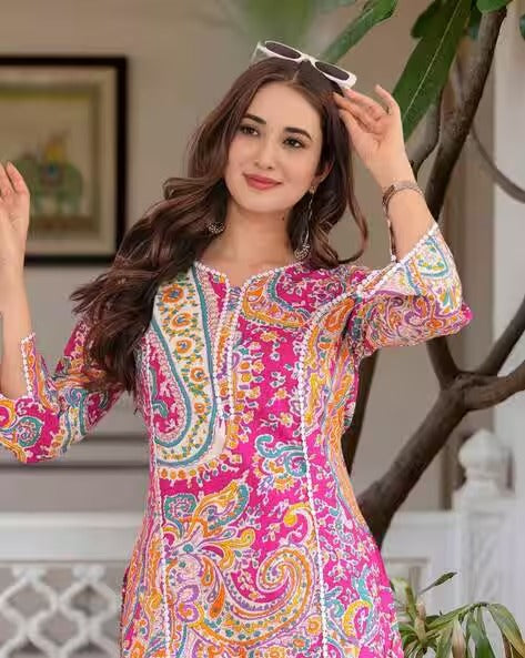 Elegant Women’s A-Line Kurta with stylish paisley print. Comfortable, chic & perfect for every occasion. Available in all sizes.