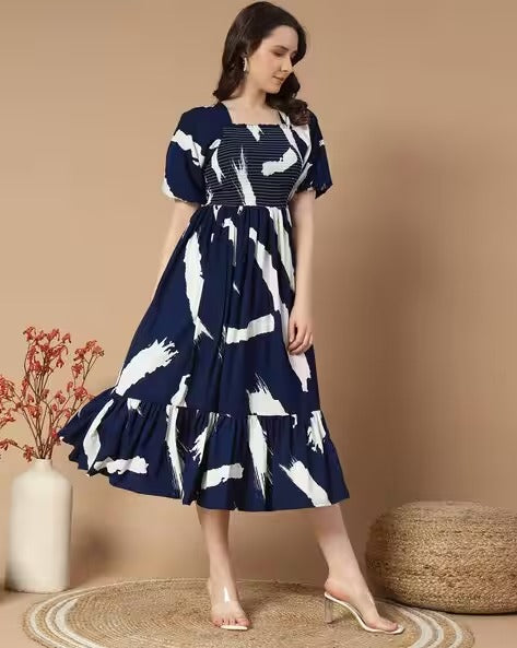 Women Printed Square-Neck Tiered Dress