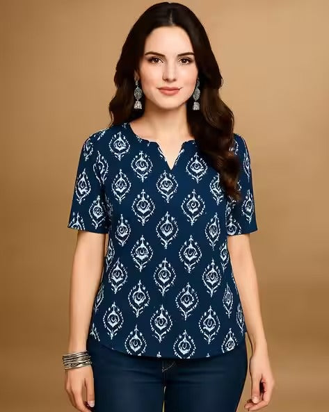 Stylish Women’s Printed V-Neck Tunics – breathable, comfy & perfect for casual or office wear