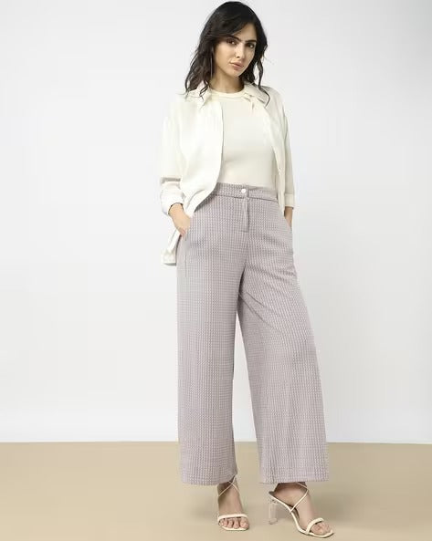 Stylish high-rise checked trousers with a relaxed fit—perfect for work or smart-casual looks. Comfortable, full-length & effortlessly chic.